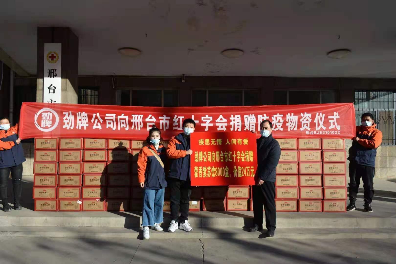 昨日,河北省邢臺(tái)市收到了勁牌持正堂委托邢臺(tái)紅十字會(huì)捐贈(zèng)的8000盒,總價(jià)值達(dá)24萬(wàn)元的藿香紫蘇飲。